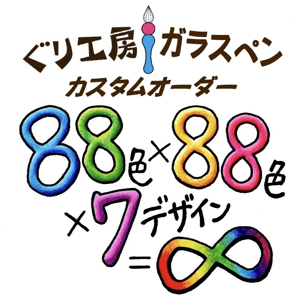 詳しい価格や選べる種類については、こちらのぐり工房Webより、ガラスペン→カスタムオーダーのぺーじをご参照ください。
