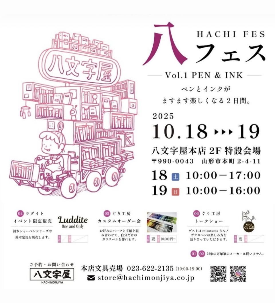 私は10/18(土)朝の新幹線で山形入りして、13:00〜から八文字屋本店にて、皆様のお越しをお待ちしてますね!!